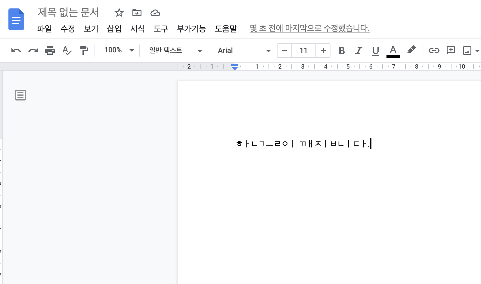 Mac에서 크롬으로 구글드라이브의 문서 기능을 사용할 때 한글이 자소분리되어 입력되는 경우가 있습니다.