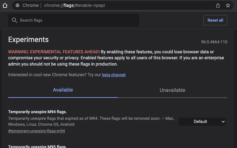 1. 크롬 주소창에 chrome://flags/#enable-npapi 입력하기