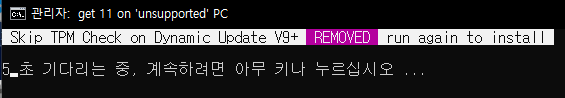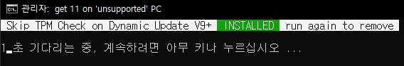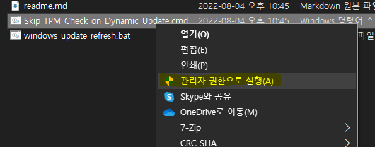 다운받은 MediaCreationTool.bat의 bypass11\Skip_TPM_Check_on_Dynamic_Update.cmd 를 관리자모드로 실행합니다.
