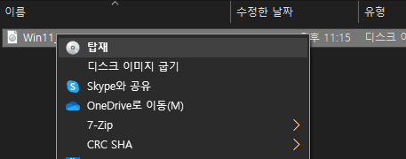 다운받은 ISO 이미지를 오른쪽 클릭한 뒤 탑재를 선택하여 마운트 합니다.